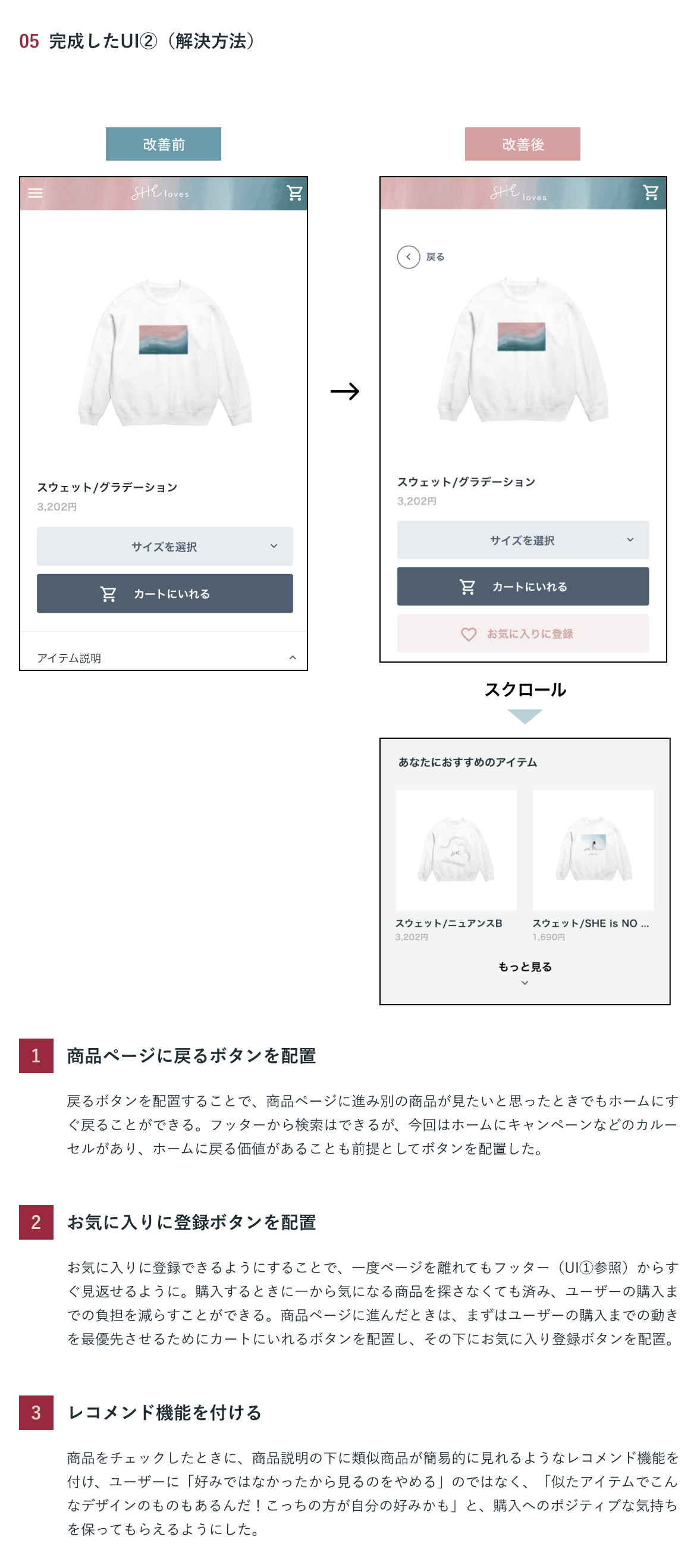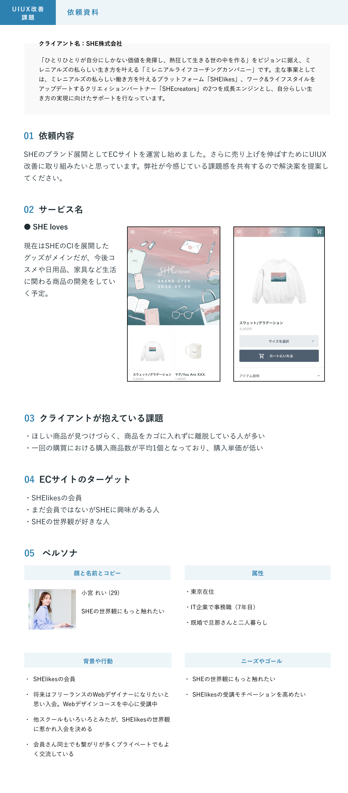 SHElikes MULTI CREATOR COURSE の課題にて、架空のクライアントECサイトのUI/UX改善をFigmaにて取り組みました。取り組み期間:1週間