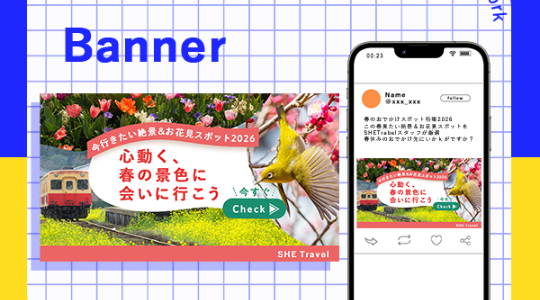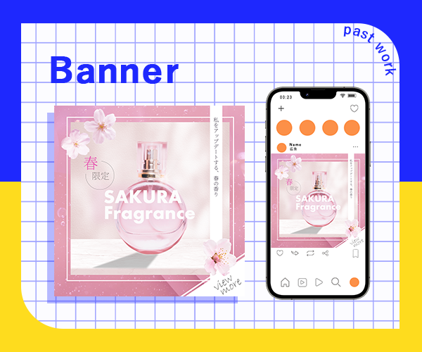 ・ピンクがくどくならないよう大胆にフチで区切り、中央に大きく商品とタイトルを配置することで、広告として流されない目を引く構成にしました。