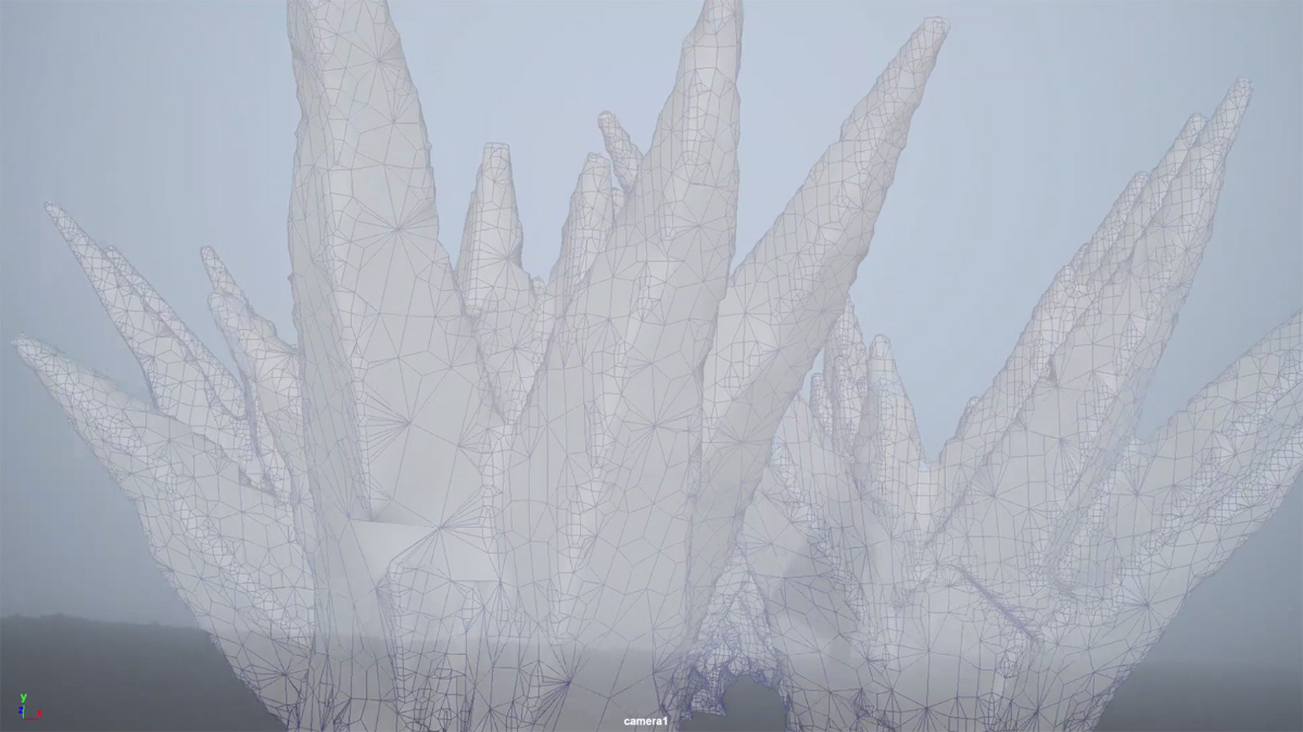 - 動画の1分30秒あたりから起きる氷塊のエフェクトCGを作成