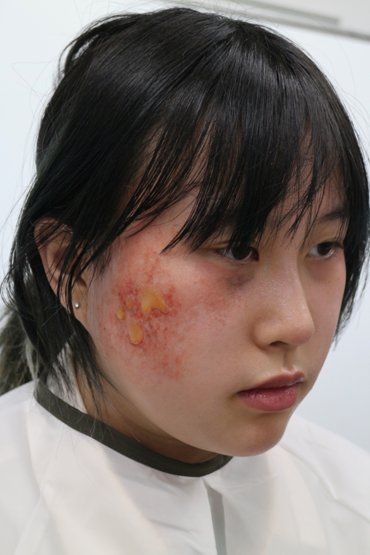 傷メイク オウ チシオン Special Makeup Artist OVERVIEW special effects makeup related to wounds or injuries. 切り傷熱傷1度熱傷3度肥厚性瘢痕