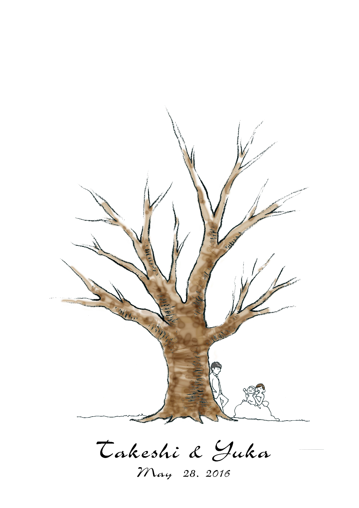新婦の依頼では、参列者からのメッセージを貼って完成させるウェルカムボードにしたいという事でした。ボードの元になるイラストを制作し、デザインしました。