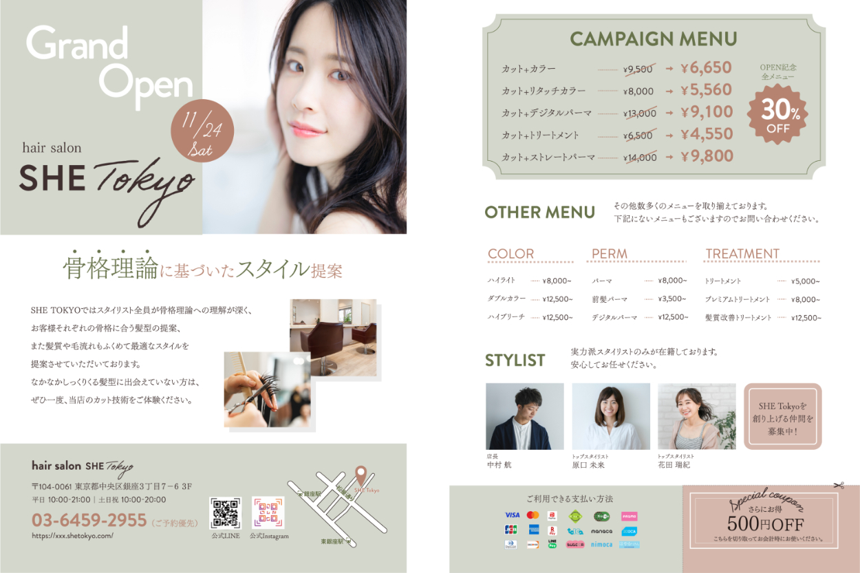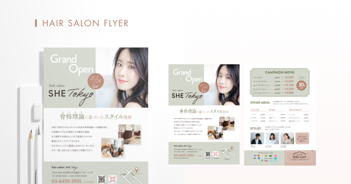 【課題制作:店舗フライヤー】美容院SHETokyo様