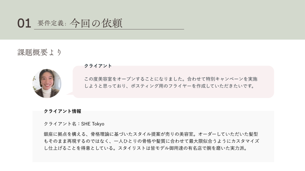 オンラインキャリアスクール「SHElikes MULTI CREATOR COURSE」内の課題7にて、実際のクライアントワークを想定したフライヤー制作を行いました。