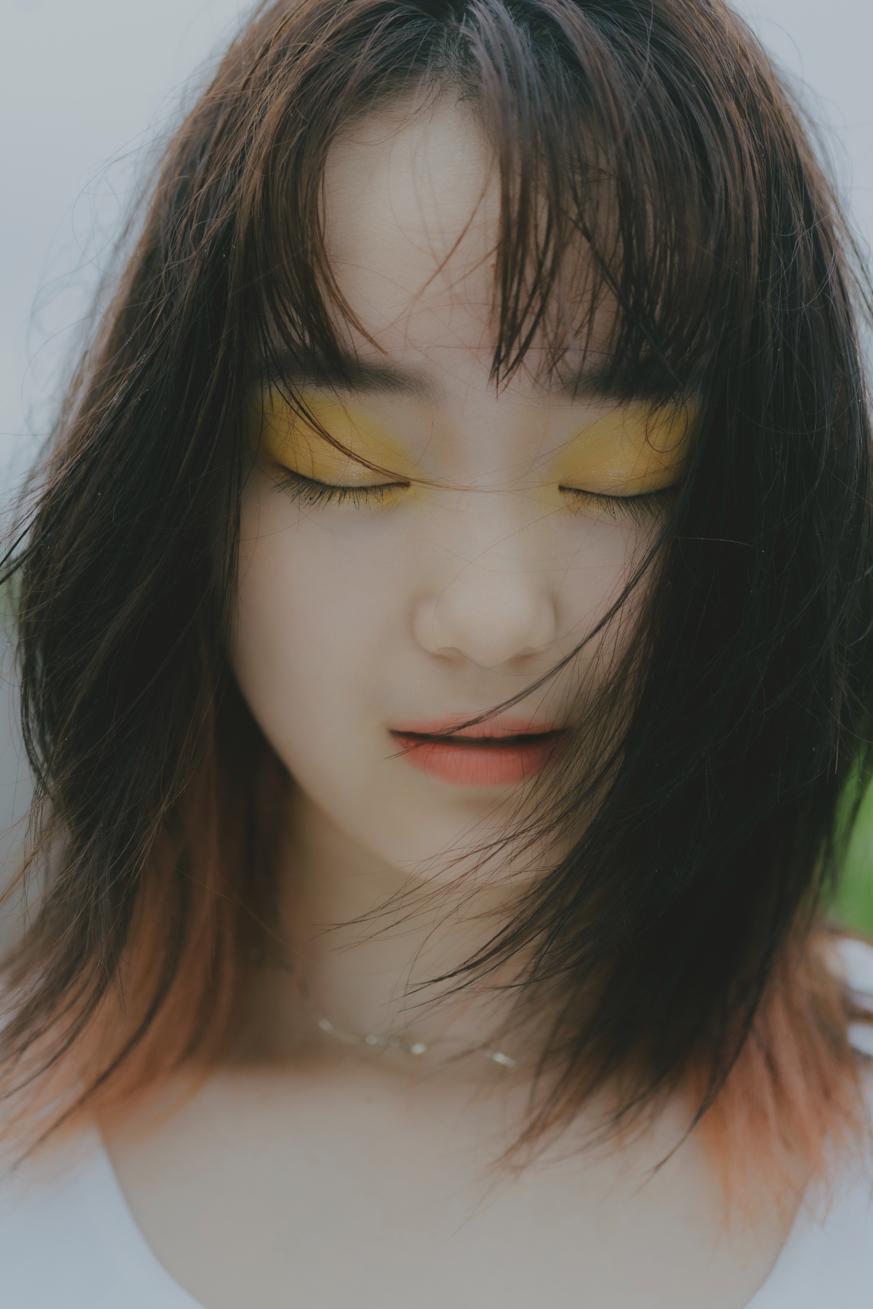瞼の黄色に目尻のオレンジで、夏の赤い太陽や新鮮なひまわりの質感を表現しました。