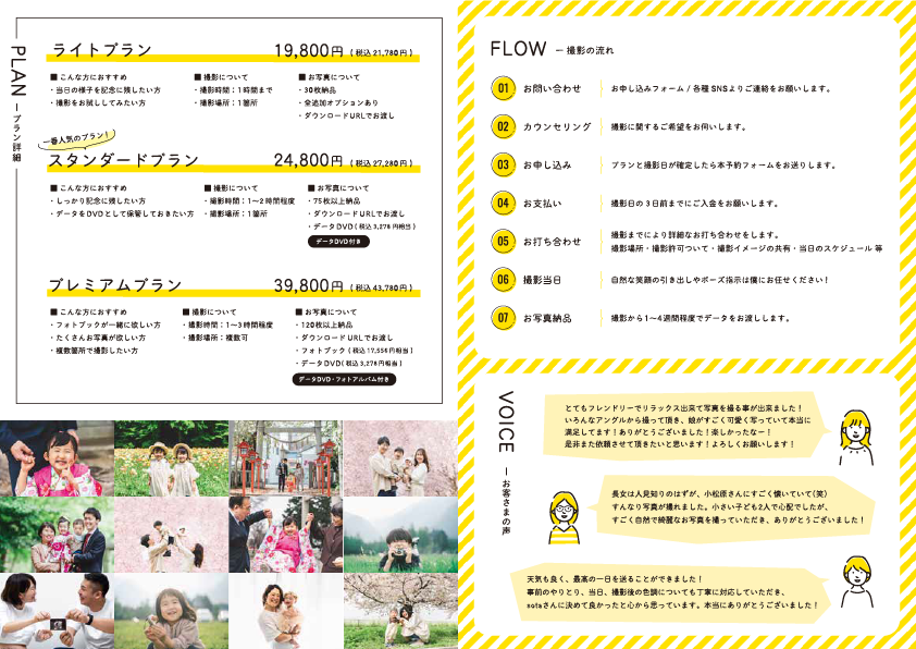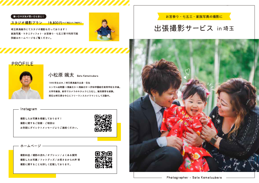 出張撮影サービス|チラシ制作 國岡 詩織 デザイナー・フォトグラファー OVERVIEW フォトグラファー|七五三撮影チラシ YEAR 2021 プロダクトオーナー:フォトグラファー 小松原颯太担当:ディレクション・チラシデザイン・印刷